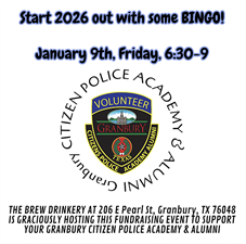 The Brew Drinkery is graciously hosting their BINGO Fundraiser in January to support Granbury PD's Citizens Police Academy & Alumni.