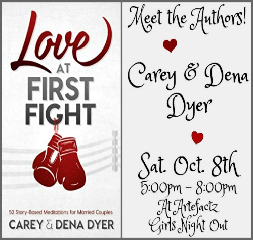 Local 'celebs' and authors Dena & Carey Dyer will be selling and signing their newest book "Love At First Fight" during Girls Night Out at Artefactz.