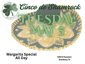 TUESDAY, MAY 5 - CINCO de SHAMROCK - celebrating the 5th of May the PUB way with a MARGARITA SPECIAL ALL DAY CELEBRATE THE 5TH OF MAY - THE PUB WAY!